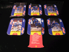 | Suomen jääkiekkomaailmanmestaruusjoukkueen tähtikentällinen, kuusi erilaista pelaajakorttia.. |