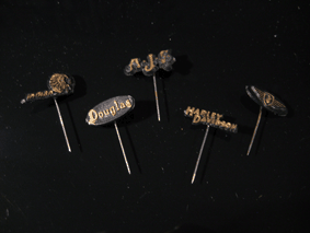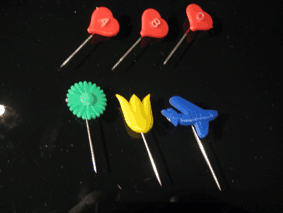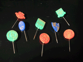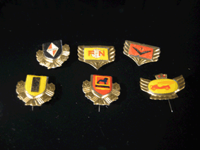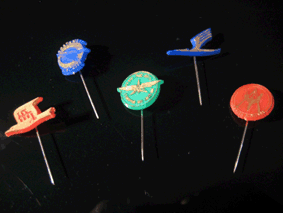 | 30 erilaista, eri maiden lentoyhtiöita esittelevää neulamerkkiä. Merkin taustapuolella on numerointi. Värit punainen, sininen ja vihreä. |